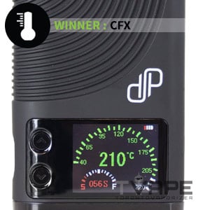 The Boundless CFX features precise temperature control meaning you can set it anywhere up to 220 degrees celcius. This gives you unlimited flexibility as you can customize your session down to the degress to find the temperature that is right for you. Because of this, the CFX wins this category.