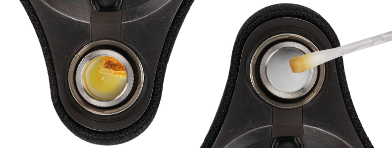 Chargement de la chambre : Retirez les composants détachables pour accéder à la chambre. À l'aide d'un outil à dab, placez une petite quantité de cire (environ la taille d'un grain de riz) dans la chambre, en évitant de trop remplir pour prévenir les obstructions ou un chauffage inégal.